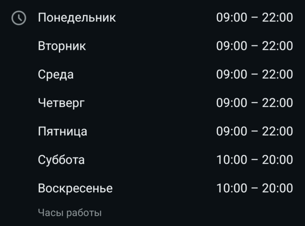 🕘 Режим работы Пн-Пт: 9:00-22:00, Сб-Вс: 10:00-20:00